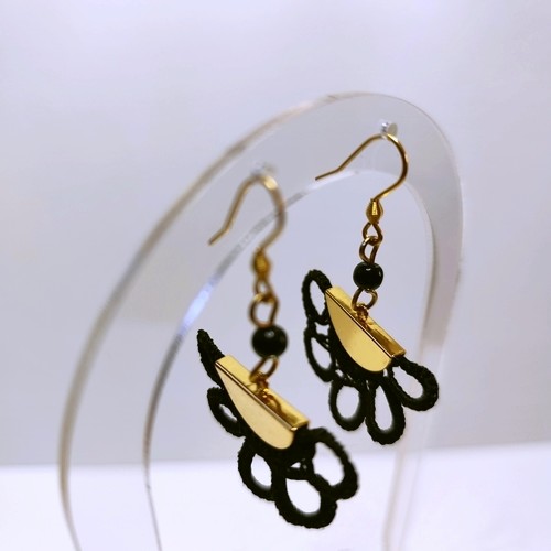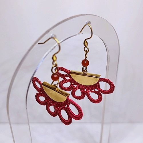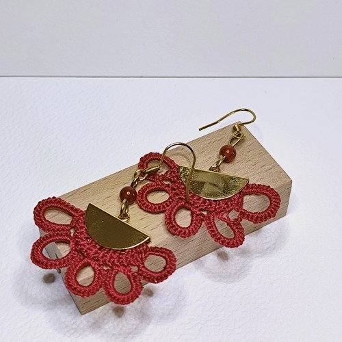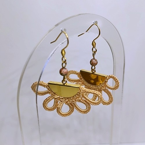 Boucles en dentelle de soie, pierres naturelles et or fin
