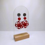 Fleurs rondes – Boucles d’oreilles en dentelle rouge et perles cornaline